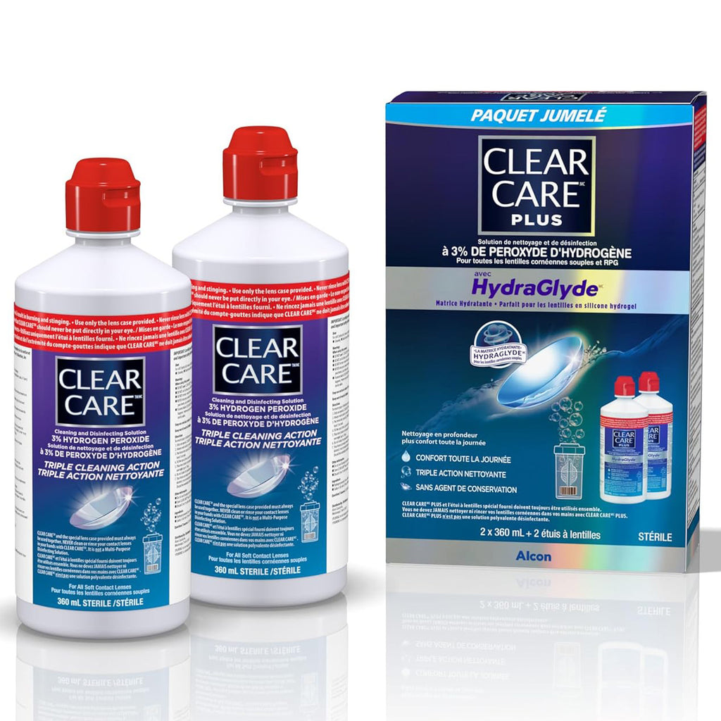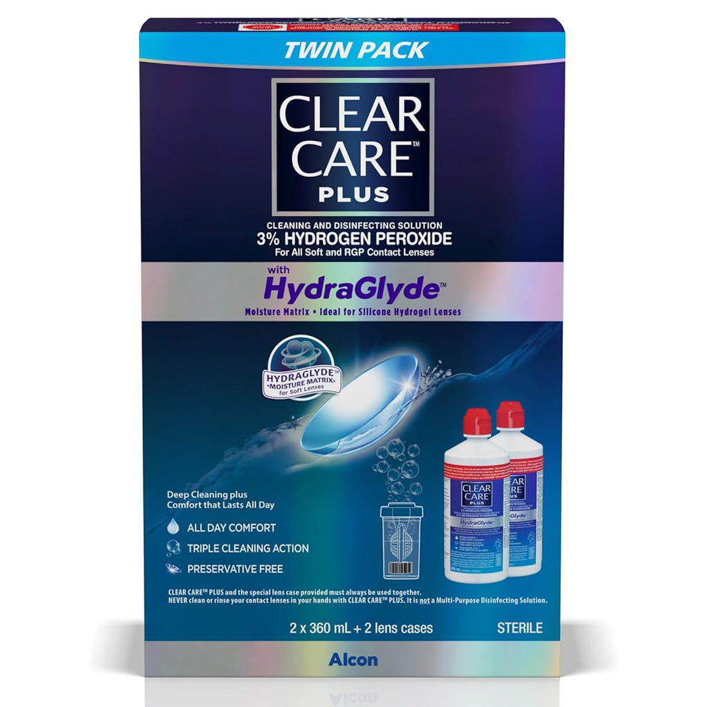 CLEAR CARE® PLUS Cleaning & Disinfecting Solution delivers deep cleaning and disinfection with the bubbling power of hydrogen peroxide while providing long-lasting moisture for all-day comfort.