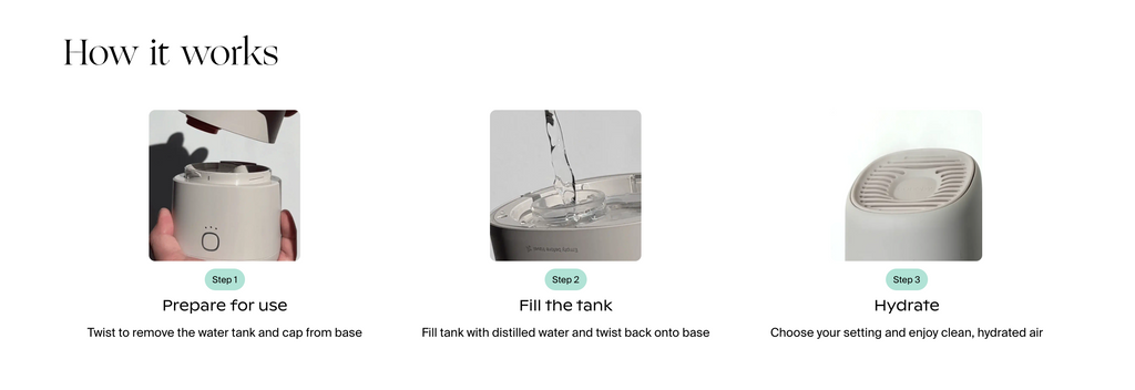 A reimagined Portable Humidifier that uses first of its kind hybrid humidification to deliver moisture on the go.