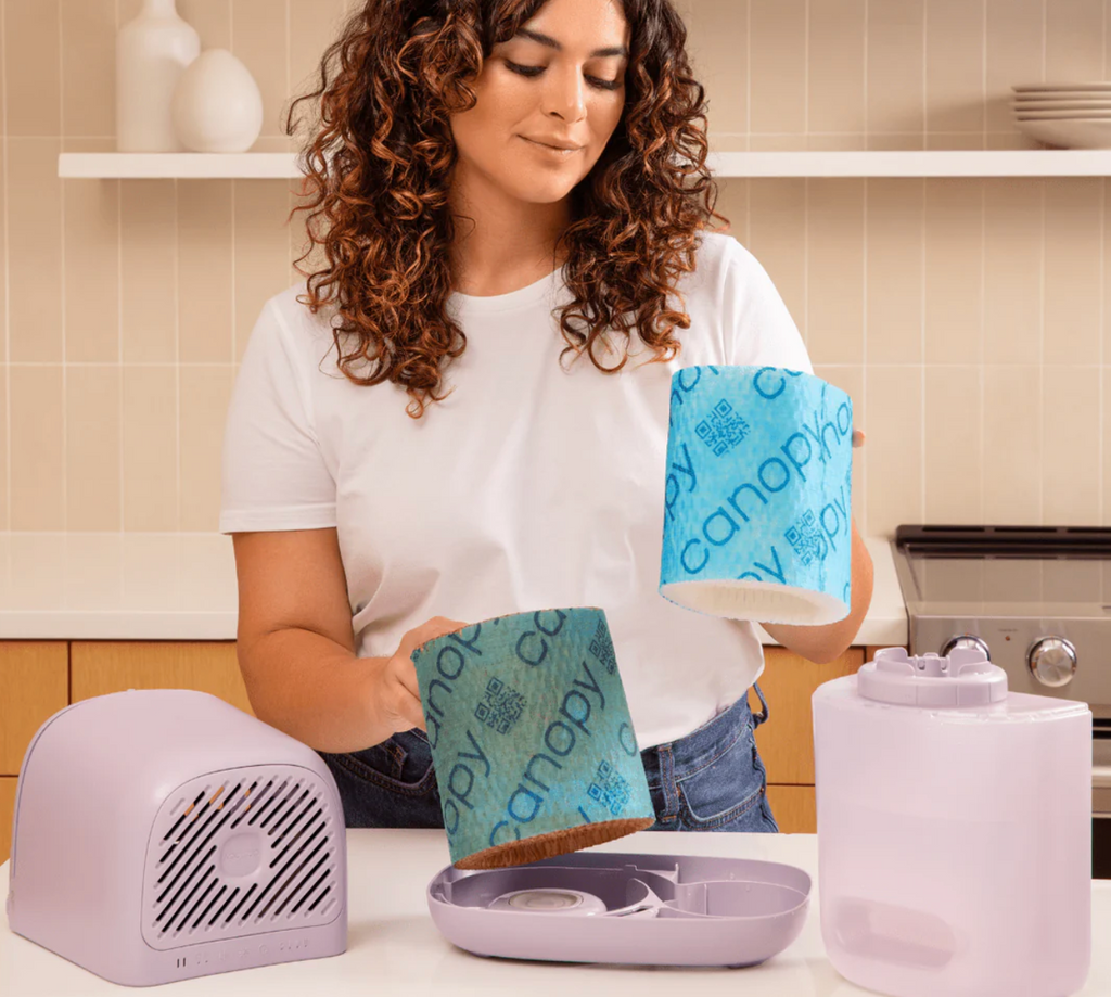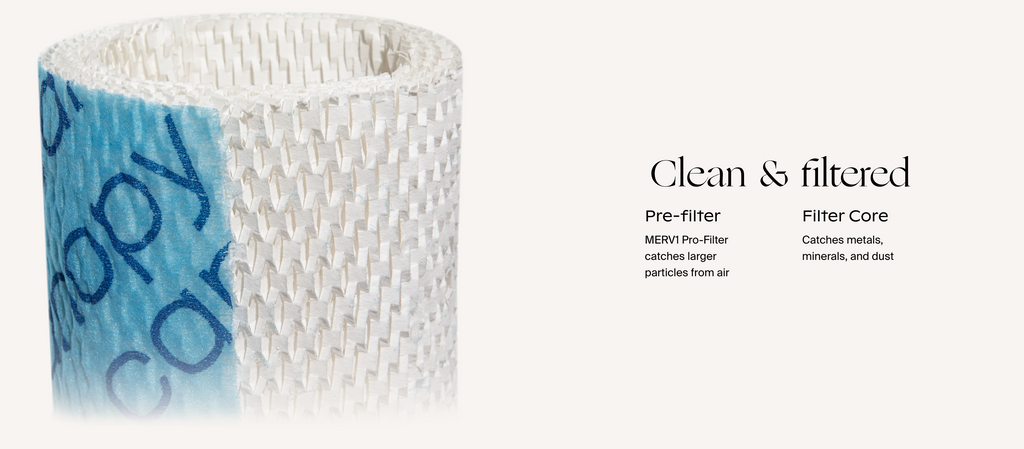 Canopy has upgraded the Beside filter to be better than ever! The new blue-wrapped filter uses the same wicking paper as the original but now has an added pre-filter layer to trap dust and larger particles from the air to stop dust before it reaches your fan.