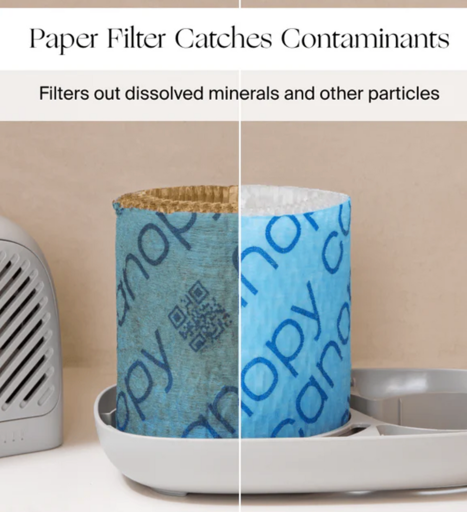 The light labeled "Filter" on the top of your Humidifier will illuminate when it's time to swap to a new Replacement Filter, but the best way to tell if your filter should be replaced is by looking and feeling. If your filter has turned crusty, hardened, and discolored throughout, then it's time to replace your filter. Generally, we recommend replacing your filter every 5-7 weeks to ensure the Canopy Humidifier is performing optimally.