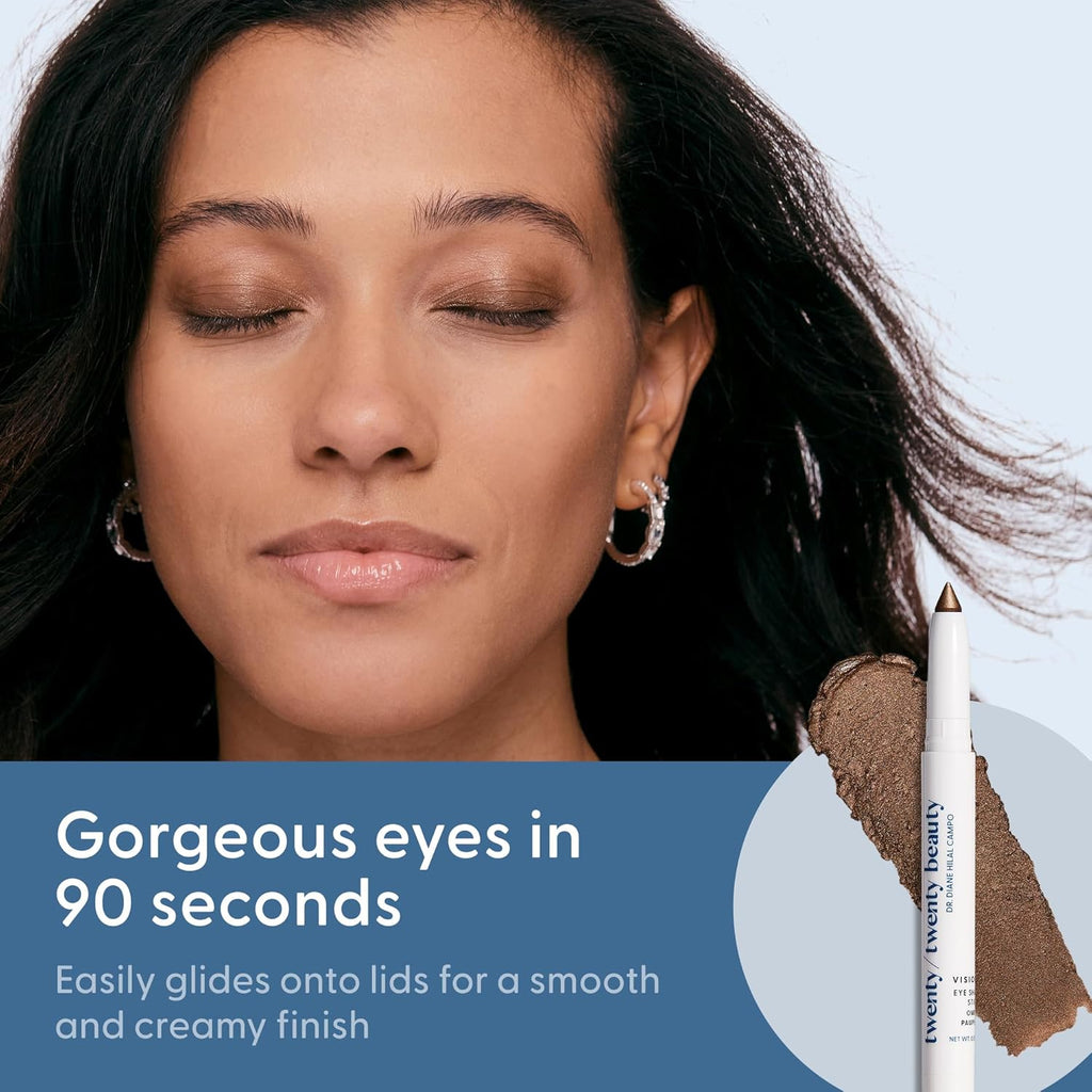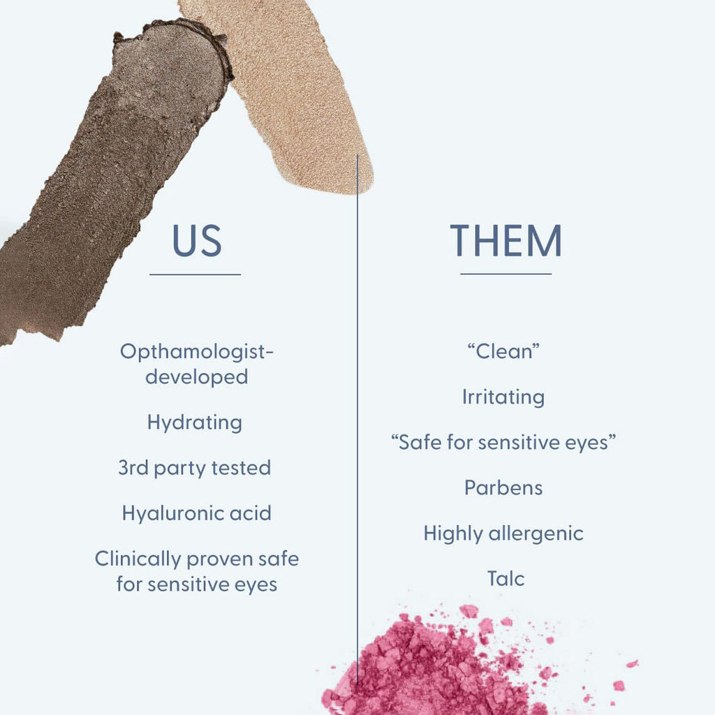 Powder-based eyeshadows can be incredibly irritating to the delicate eye area. The pigments and glitter flake onto the ocular surface, which can cause inflammation, scratch the cornea, or even permanently stain the subconjunctiva, the area behind the whites of your eyes.twenty/twenty beauty Visionary Shadow Stick is a creamy shadow stick with gentle, ophthalmologist-tested, eye-safe ingredients to enhance your eyes’ natural beauty without the irritation.