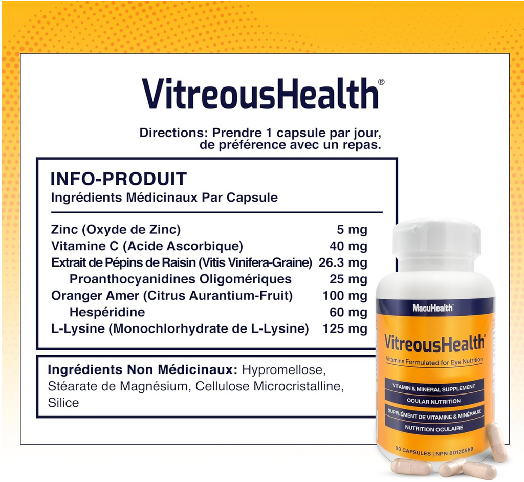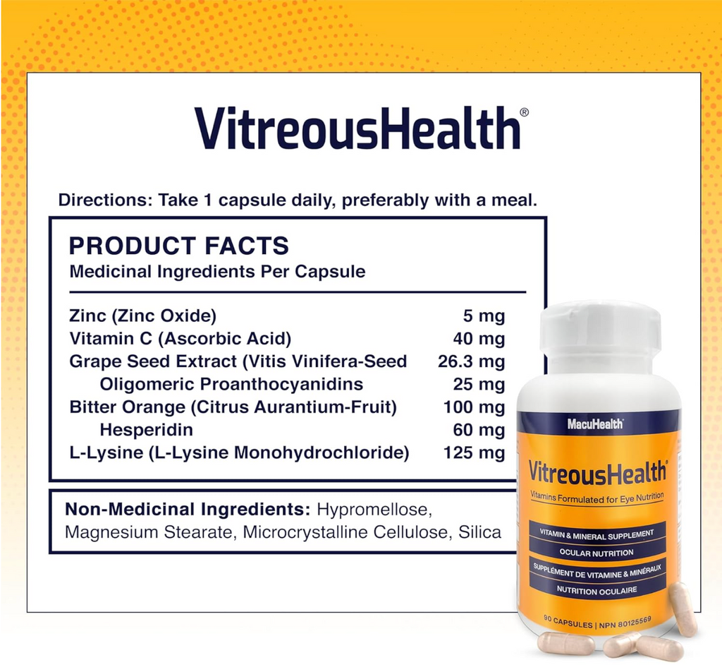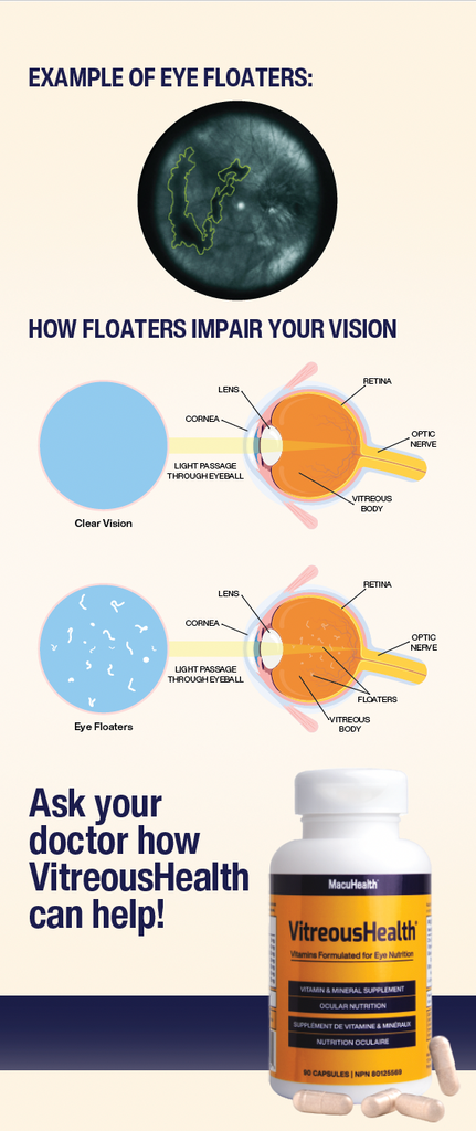 VitreousHealth is an eye floater formula that contains antioxidant and anti-glycative nutrients, the effectiveness of which was published in Translational Vision Science and Technology.
