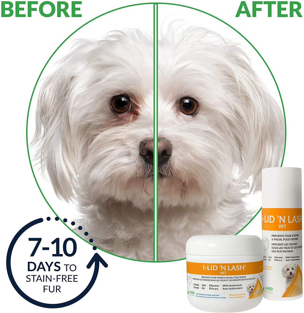I-LID ’N LASH® VET is highly safe and effective at preventing the formation of tear stains on the fur surrounding the eyes. Simply apply the product in a circular motion on the fur surrounding the eyes (no need to rinse-off) where it will work to prevent tear stains, while hydrating the skin.