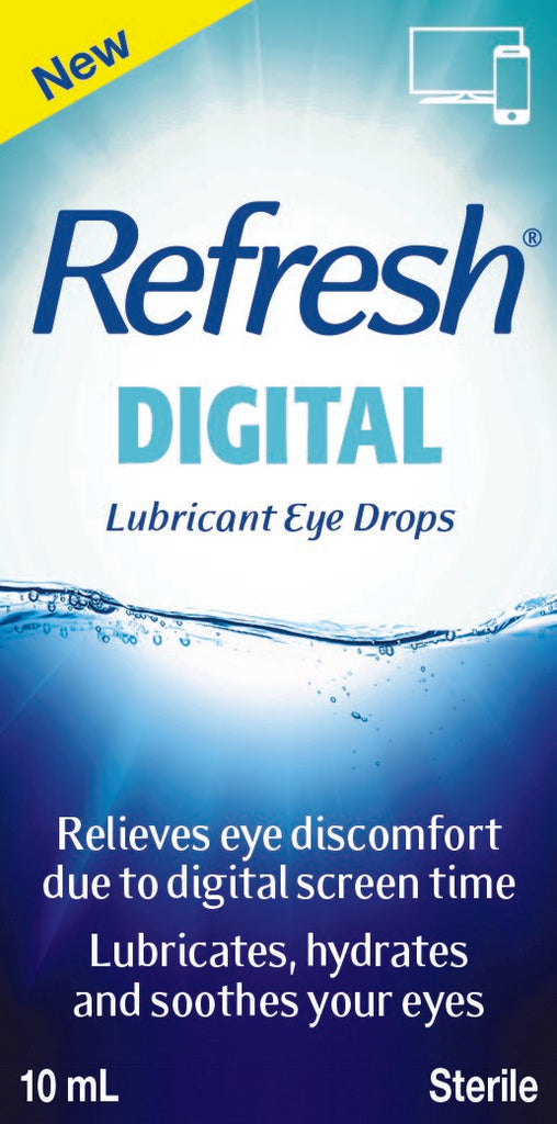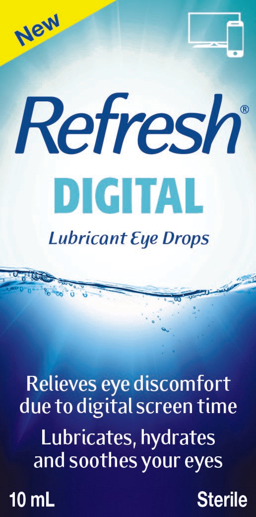 Refresh® Digital is for the temporary relief of burning, irritation, and discomfort due to dryness of the eye or due to environmental conditions. Helps to protect against further irritation. Relief of eve discomfort caused by reduced blink frequency due to prolonged digital screen time
