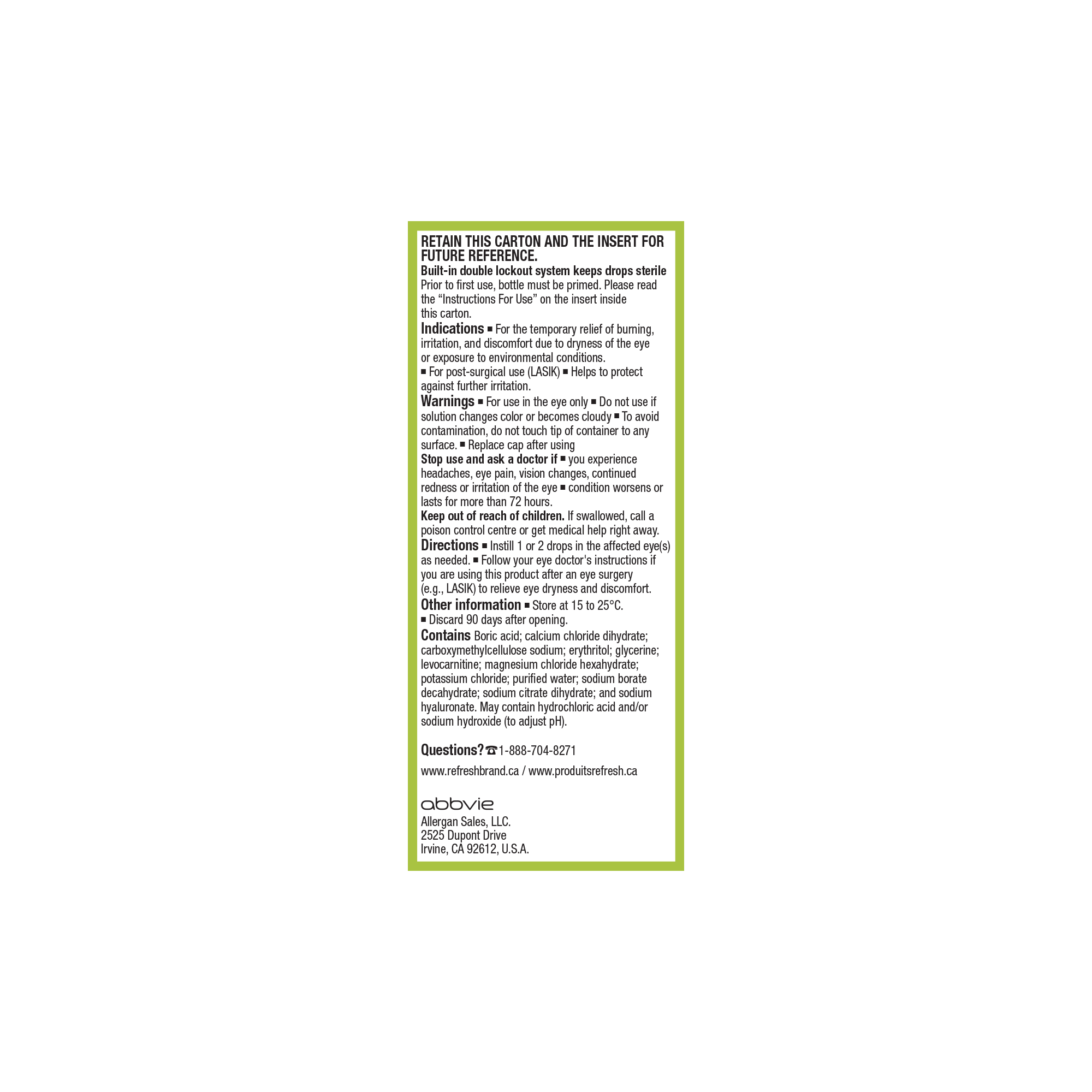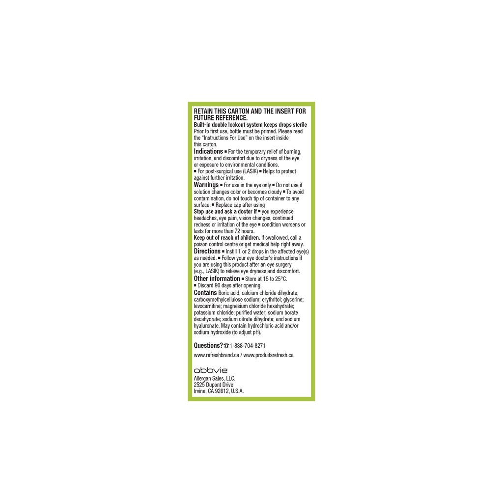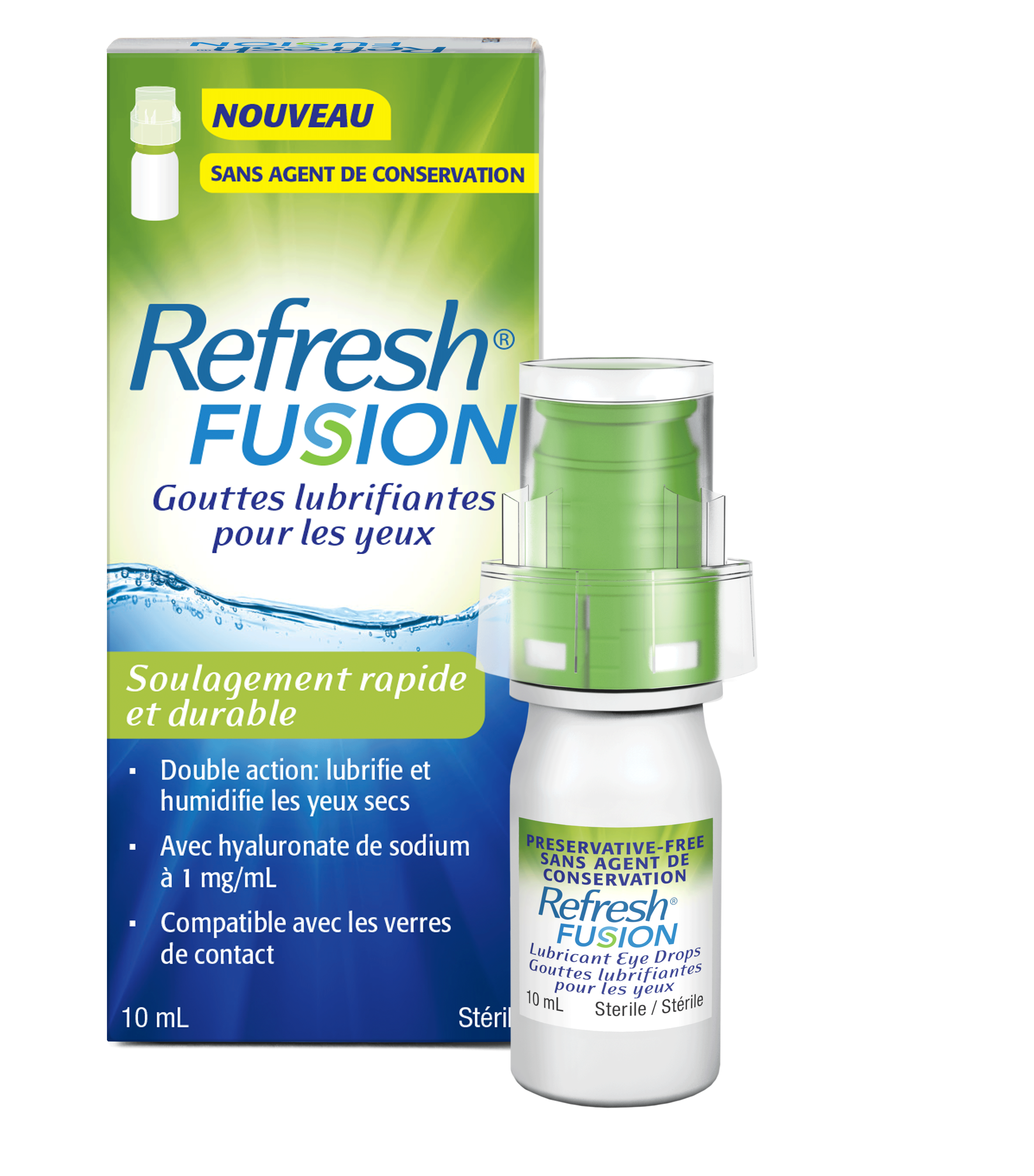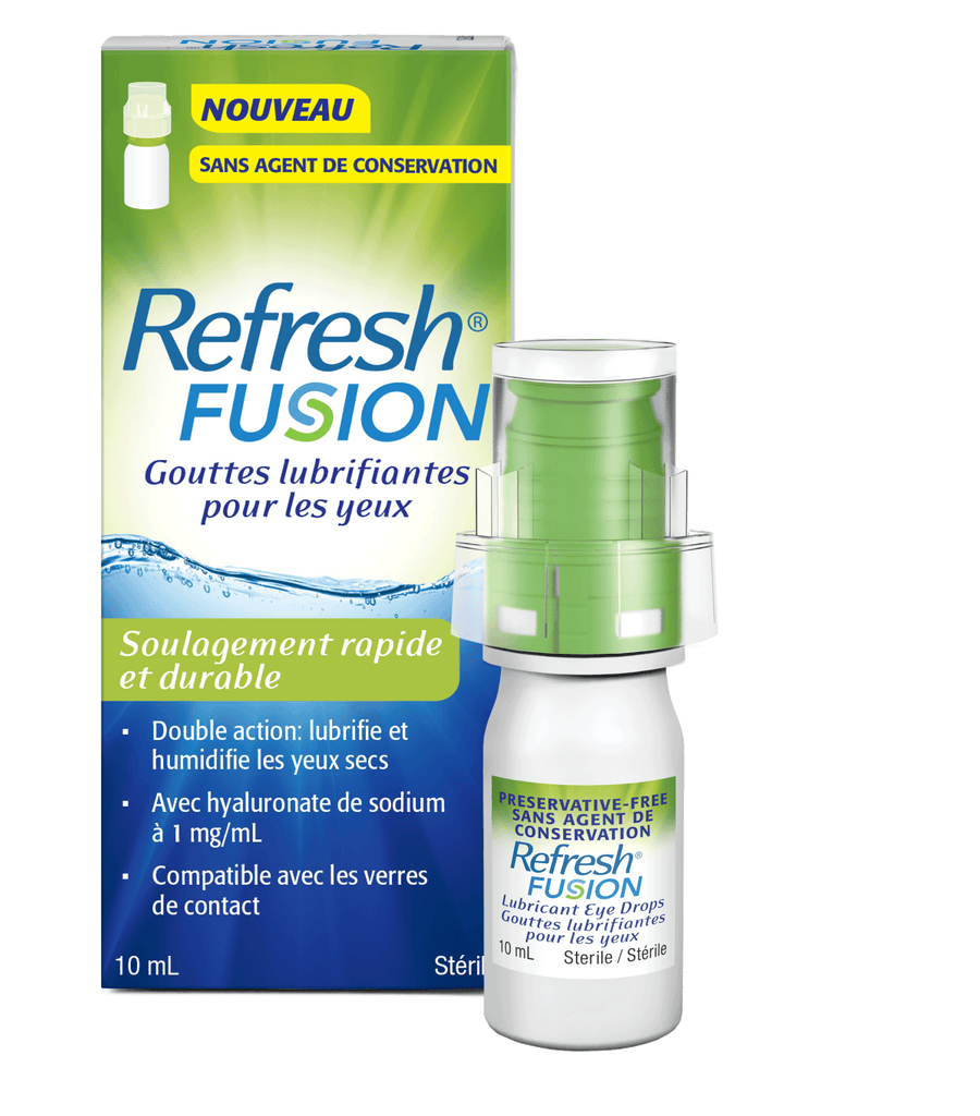 Refresh® Fusion® is a dual action formula that lubricates and hydrates dry eyes. For the temporary relief of burning, irritation, and discomfort due to dryness of the eye or exposure to environmental conditions, and post-surgical use (LASIK). Helps to protect against further irritation.