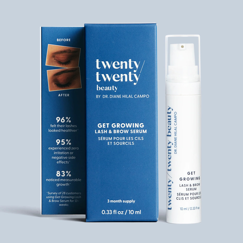 Get Growing Lash & Brow Serum is a cleaner formulation that not only helps support the growth of thicker, darker, and healthier lashes and brows, but also works to minimize the symptoms of dry eye disease with daily use. Because eye health is a top priority for twenty/twenty beauty, this product comes with disposable applicators (no double-dipping wands!) to help you maintain a hygienic routine.