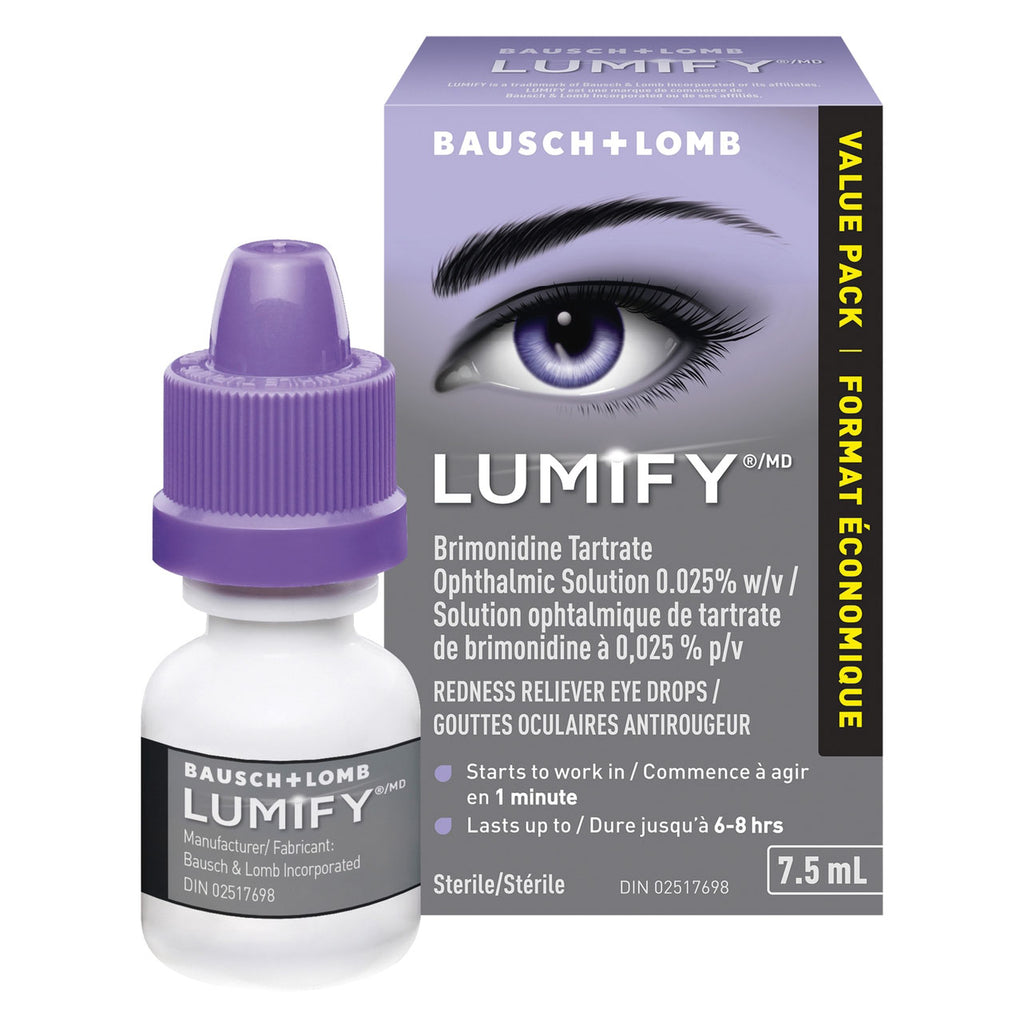 Health Canada Approved Health Canada has approved Bausch + Lomb's LUMIFY® (brimonidine tartrate ophthalmic solution 0.025%) as the first and only over-the-counter eye drop developed with to relieve eye redness in Canada!