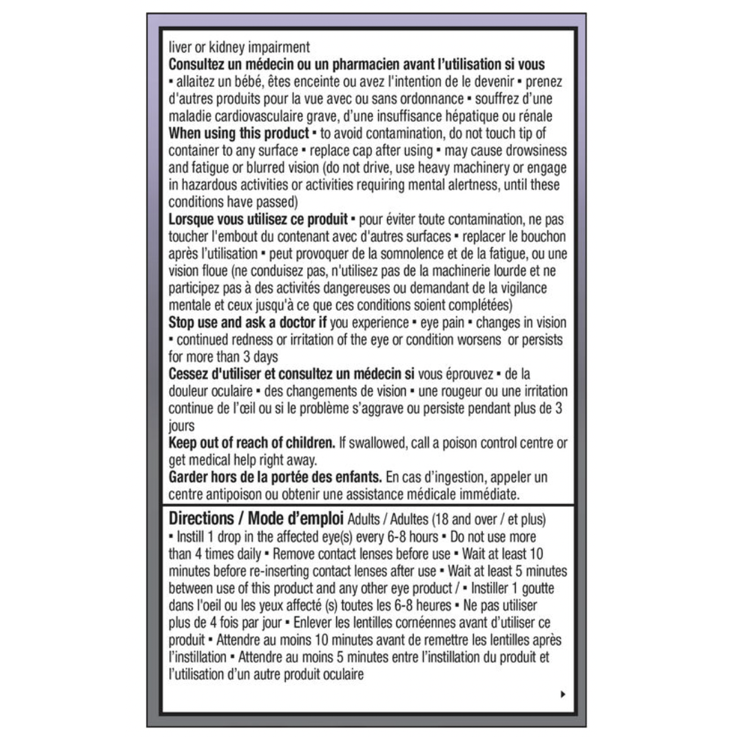 Active ingredient Brimonidine tartrate (0.025%) … redness reliever.